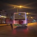 Bursa’da seyir halindeki belediye otobüsünün arkasına tutunan çocuklar yürekleri ağza getirdi. Tehlikeli yolculuk, vatandaşlar tarafından endişeyle izlendi.