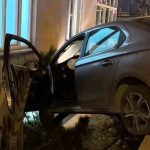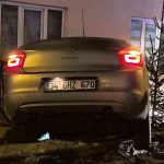 Erzurum’un Palandöken ilçesinde meydana gelen trafik kazasında otomobil bina ile duvar arasında asılı kaldı.