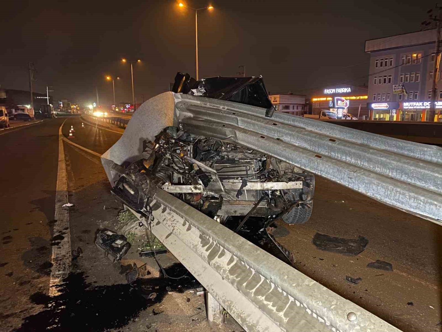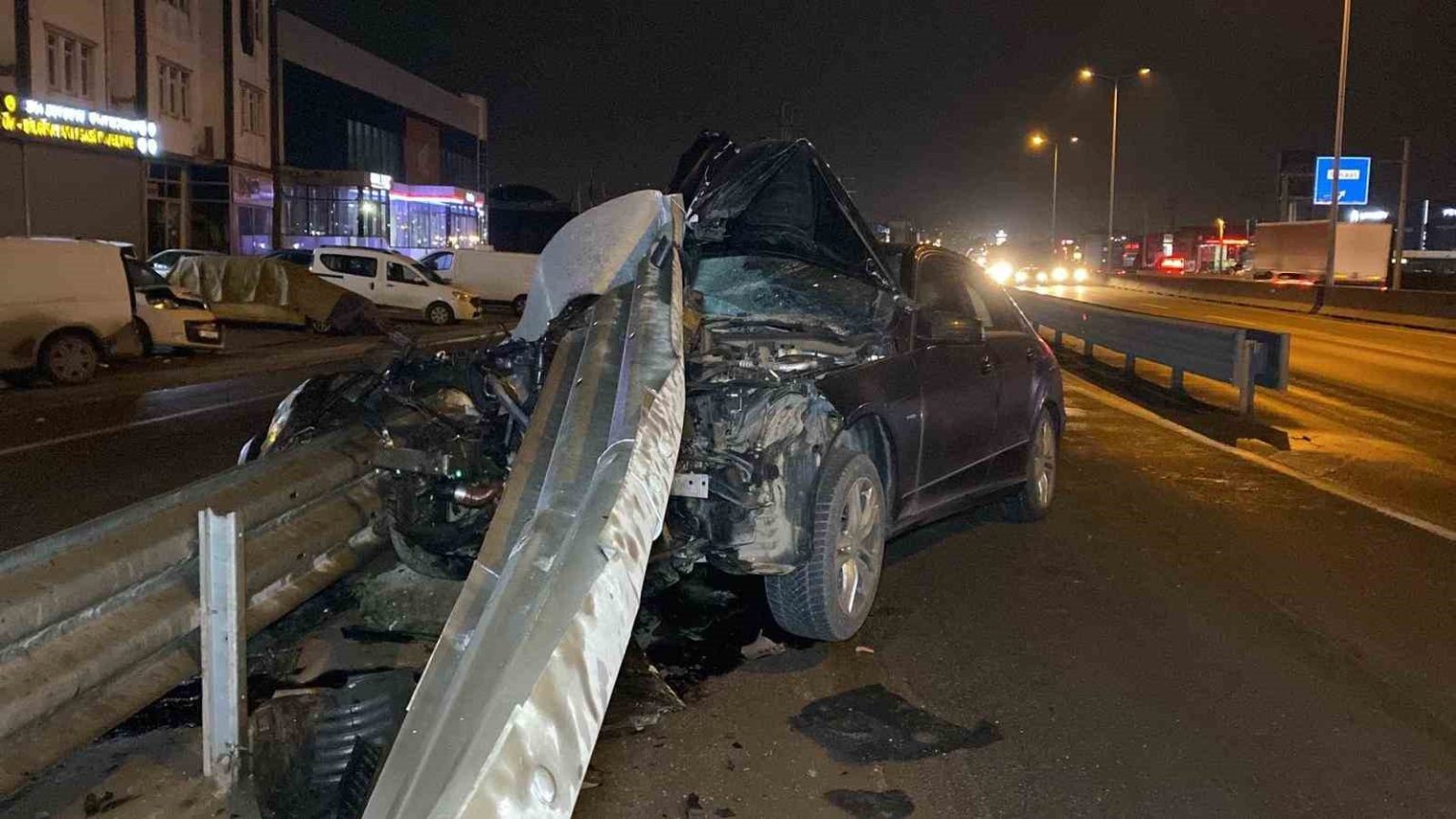 Kaza, Başiskele ilçesi Vezirçiftliği Mahallesi D-130 Karayolu İzmit istikametinde meydana geldi. Edinilen bilgilere göre, yan yoldan D130 Karayolu’na bağlanmaya çalışan 34 BG 6900 plakalı Mercedes marka otomobil, sürücüsünün direksiyon hakimiyetini kaybetmesi sonucu bariyerlere çarptı. İhbar üzerine olay yerine sağlık, itfaiye ve polis ekipleri sevk edildi. Araç hurdaya dönerken, sürücü şans eseri kazayı yara almadan atlattı. Polis olayla ilgili inceleme başlattı.