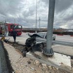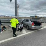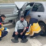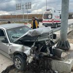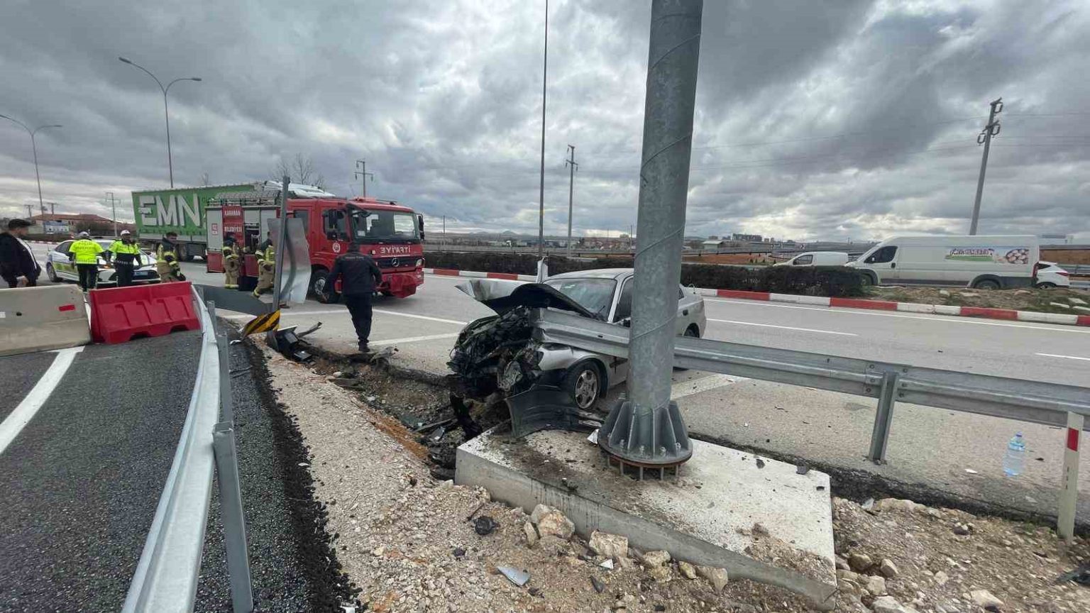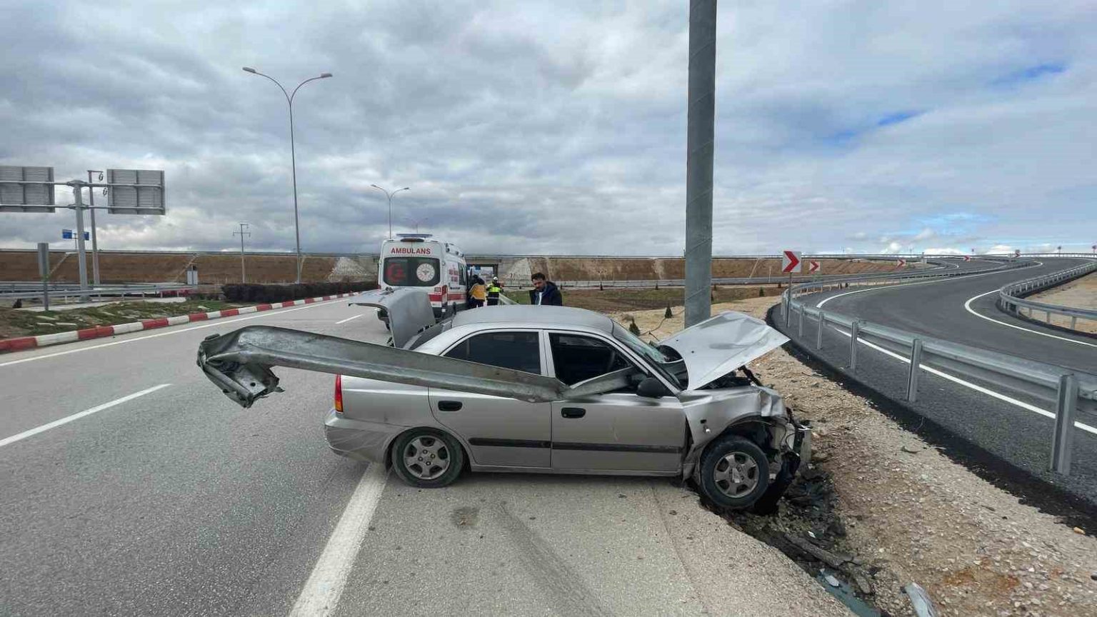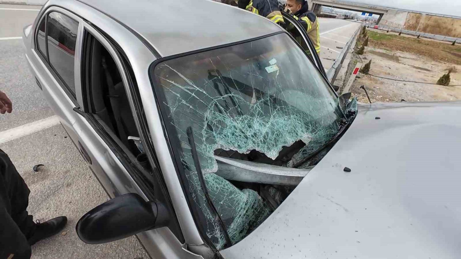 Karaman’da sürücüsünün direksiyon hakimiyetini kaybettiği otomobil demir bariyere ok gibi saplandı. Kazada karı koca ölümden döndü.