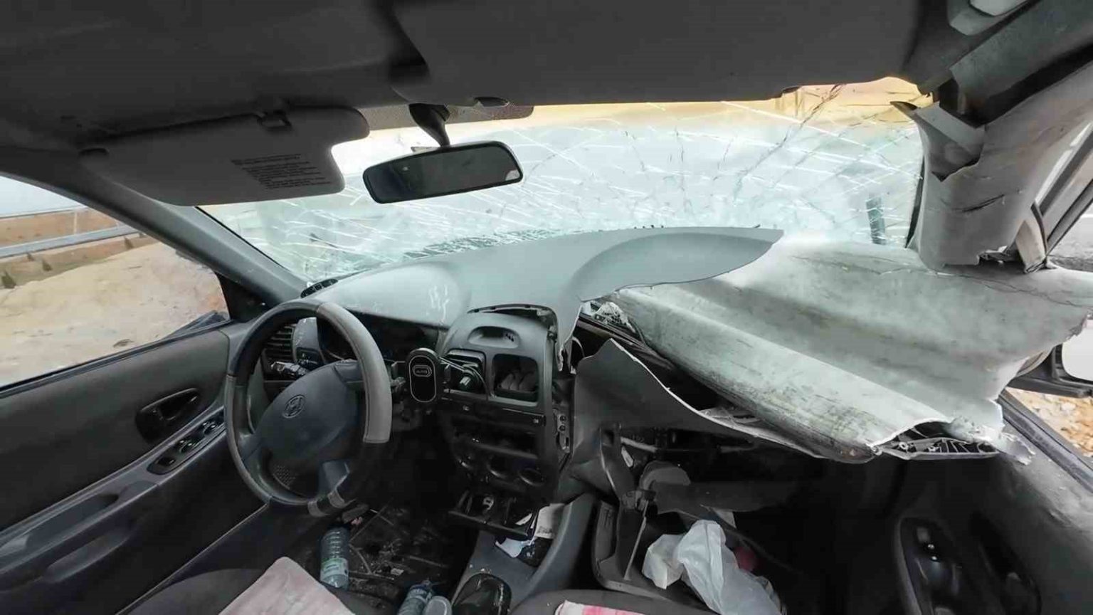 Otomobil demir bariyere ok gibi saplandı: Karı koca ölümden döndü