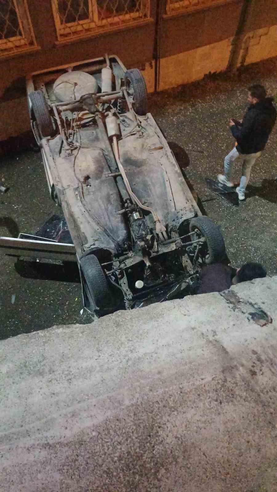 Otomobil istinat duvarından okulun bahçesine düştü: 2 yaralı