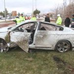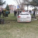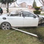 Konya’nın Beyşehir ilçesinde kontrolden çıkan otomobil, kavşakta devrildi. Ortalığın adeta savaş alanına döndüğü kazada sürücü yaralandı.