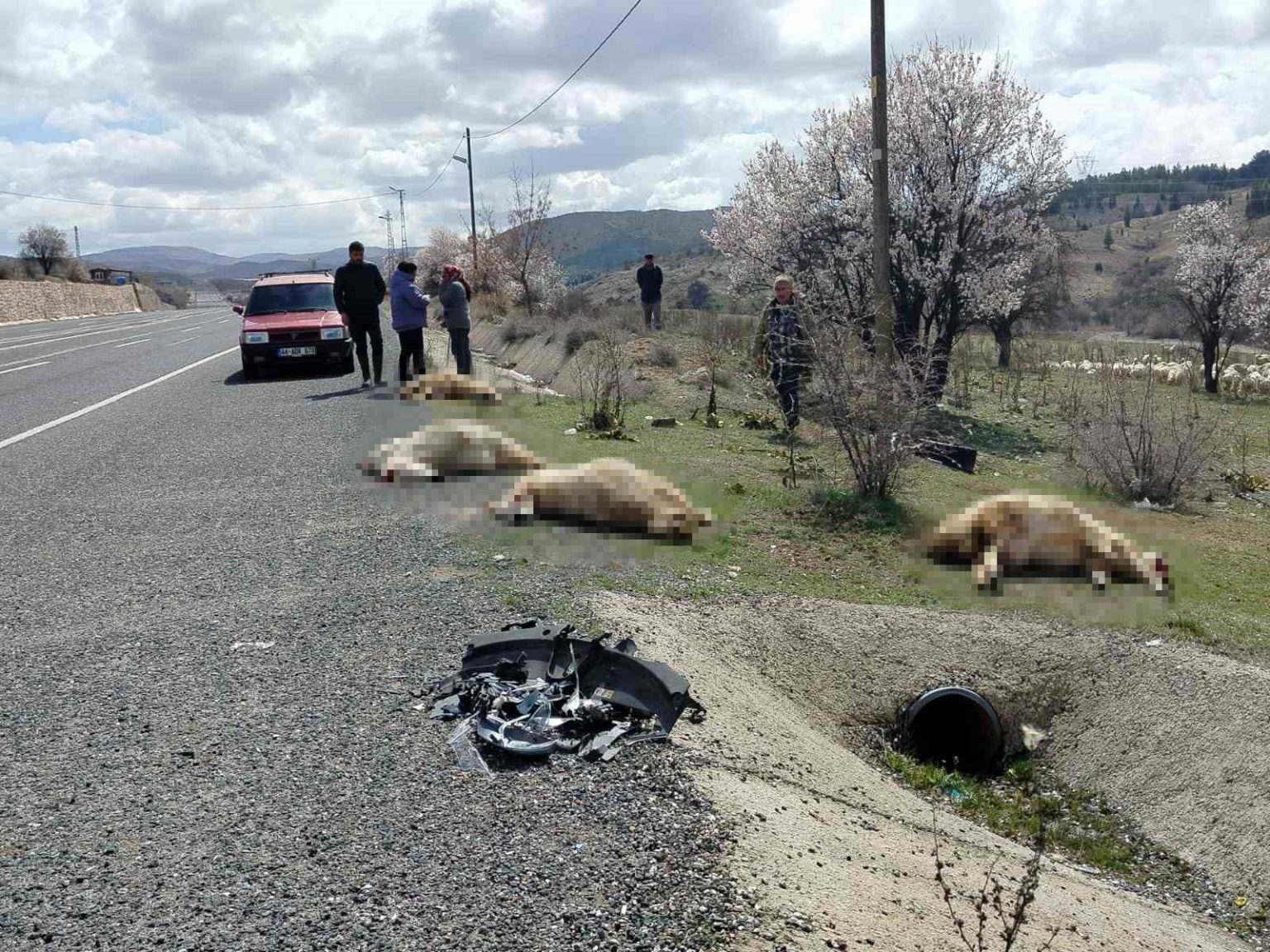 Otomobil koyun sürüsüne daldı: 9 koyun telef oldu