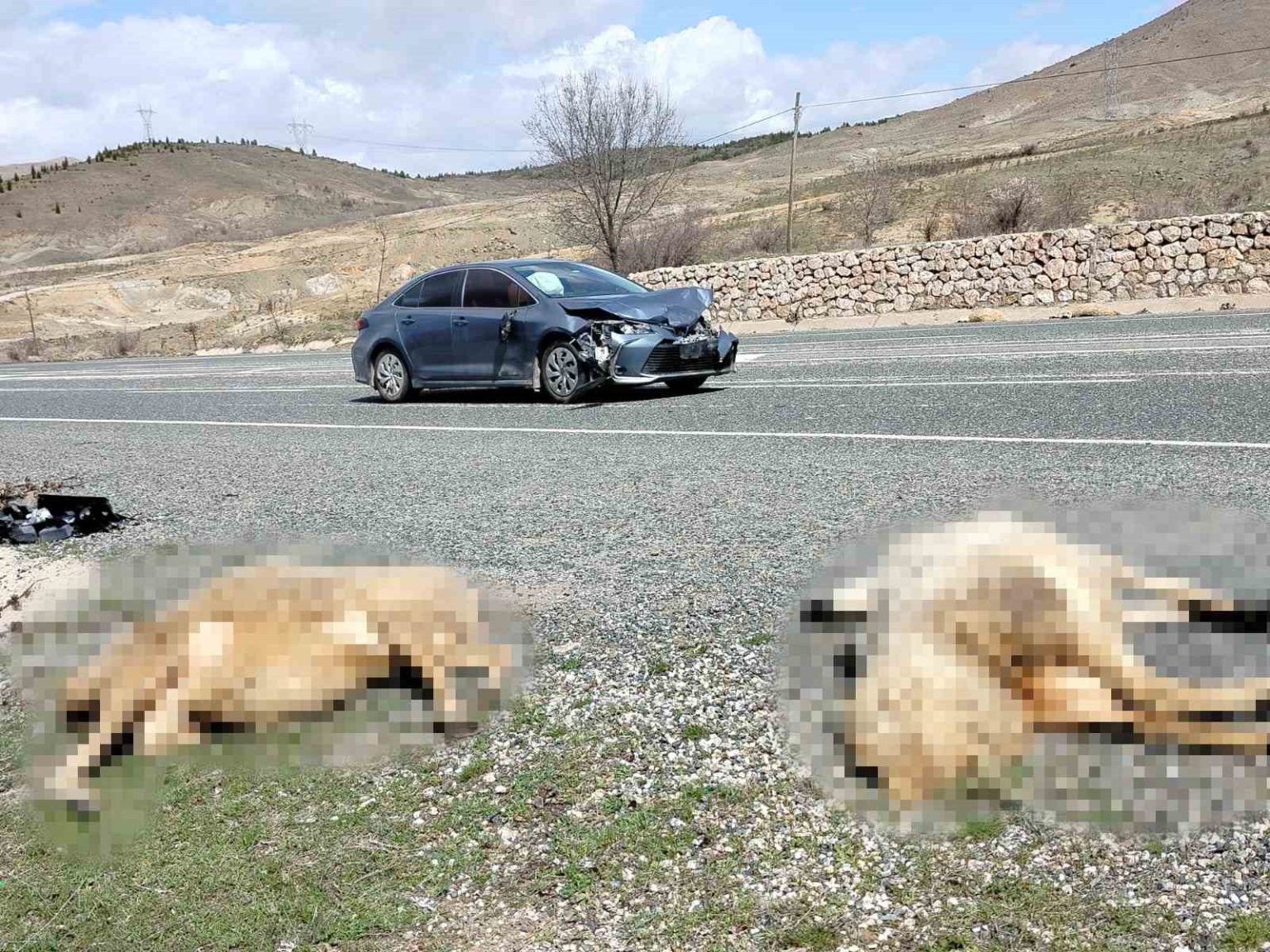 Elazığ’ın Keban yolunda otomobil koyun sürüsüne çarptı. Kazada 9 koyun telef oldu.