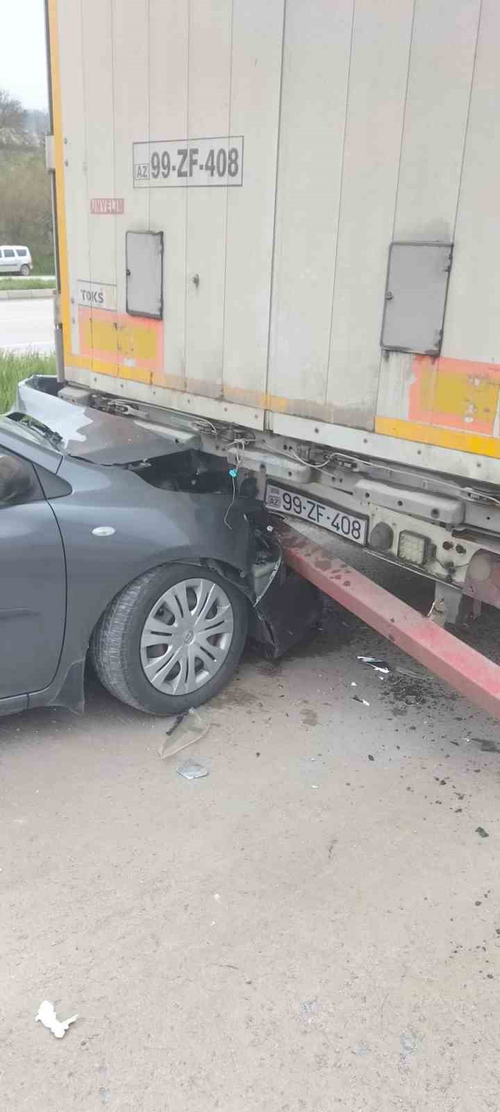 Otomobil park halindeki tıra çarptı: 5 yaralı