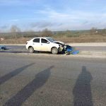 Kırklareli’nin Pınarhisar ilçesinde sabah saatlerinde meydana gelen trafik kazasında bir otomobil, duble yol girişi refüj başı yön tabelasına çarptı.