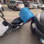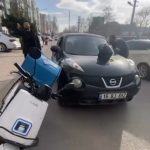 Otomobil sürücüsü ile motosikletli kurye arasındaki gerginlik kamerada