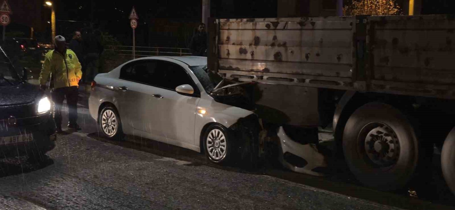 Bartın Gölbucağı Kavşağı’nda şehir merkezi istikametine seyir eden S.T. idaresindeki 34 BJG 526 plakalı otomobil, kırmızı ışıkta duran K.D idaresindeki 74 BE 133 kupa plakalı tırın dorsesine arkadan çarptı. Dorseye ok gibi saplanan otomobilin ön kısmında büyük hasar görürken, sürücüsü ise araç içerisinde sıkıştı. Kazanın ardından aracın kornası da takılı kaldı. Kaza ihbarı üzerine olay yerine gelen itfaiye ekipleri, sıkışan sürücüyü kurtarma çalışması yürütürken, korna sesini de kesmeye çalıştı. Ekipler zaman zaman yeniden çalan korna sesini kesmeyi başarırken, uzun uğraşlar sonucu da araçta sıkışan sürücü de araçtan çıkarıldı. Sıkıştığı yerden kurtarılan sürücü S.T, sedye ile ambulansa götürülerek, ilk müdahalesi yapıldı. İlk müdahalenin ardından sürücü Bartın Devlet Hastanesi’ne götürülerek, tedavi altına alındı.
