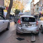 Kaza, saat 16.00 sıralarında İnegöl ilçesi Hamidiye Mahallesi Hastane caddesinde meydana geldi. Edinilen bilgiye göre, cadde üzerinde seyir halinde sürücü M.V. (31) yönetimindeki minibüs, önünde bir süre önce durup ailesini araca almakta olan sürücü G.B. (41) yönetimindeki otomobile arkadan çarptı. Çarpmanın etkisiyle araçlar savrulurken, minibüs ise 50 metre ilerideki caminin bahçe duvarına çarparak durabildi.