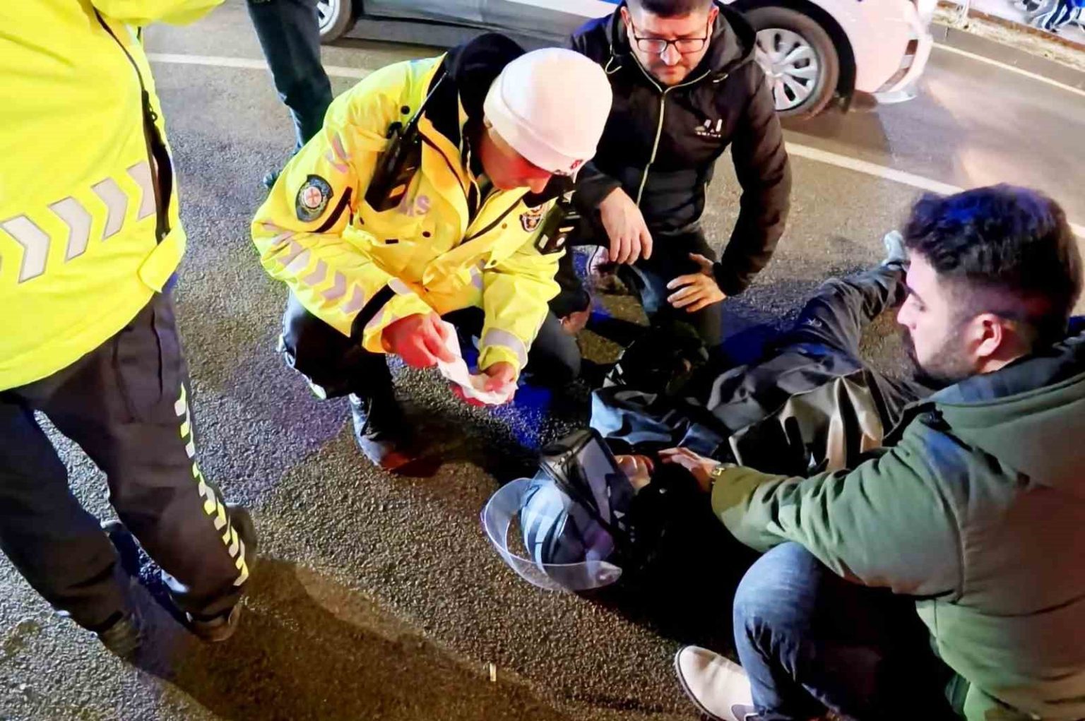 Otomobilin çarptığı motosiklet sürücüsü yaralandı