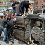 Diyarbakır’da otomobilin kaldırıma çarpıp yan yatması araç kamerasınca kaydedildi. Çevredeki vatandaşlar sürücüyü otomobilden çıkartıp sağlık ekibine teslim etti.