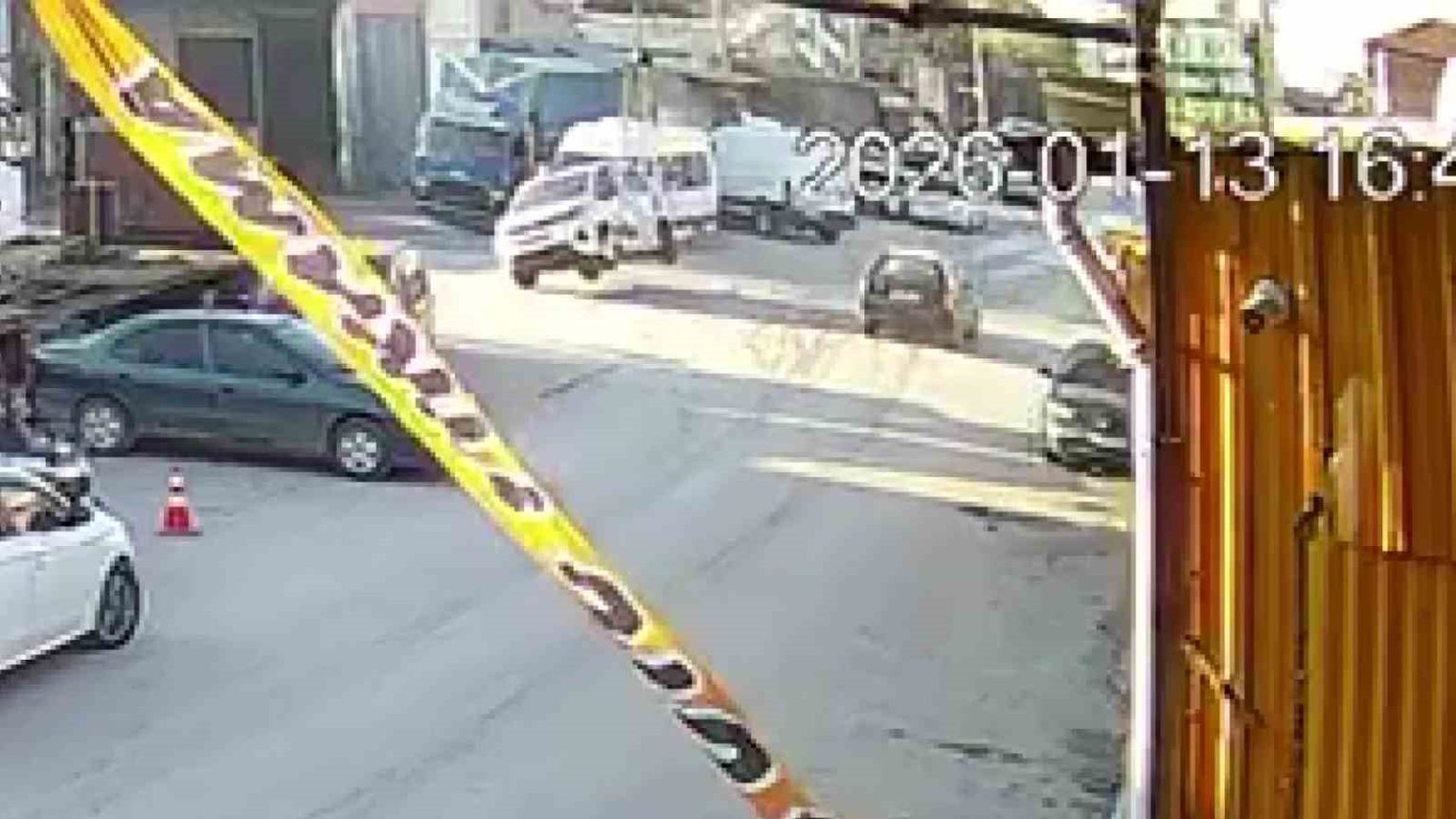 Kaza ise bir işyerinin güvenlik kameralarına anbean yansıdı. Güvenlik kameralarında otomobil seyir halindeyken aniden yola çıkan hafif ticari araca çarptığı, kaza sonucunda hafif ticari aracın yan yattığı görüldü.