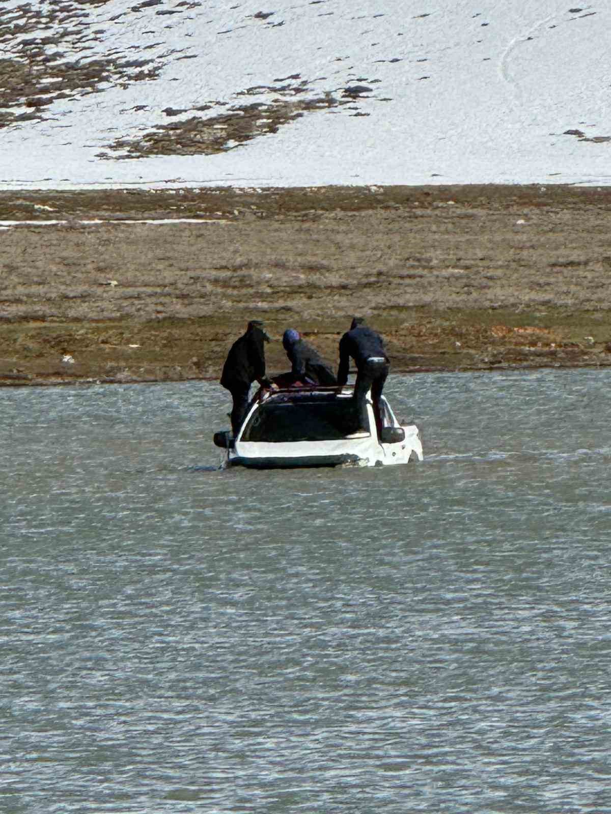 Otomobille girdikleri gölde mahsur kaldılar