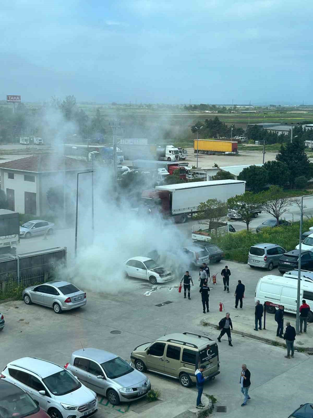 Otoparktaki otomobil, alev topuna döndü