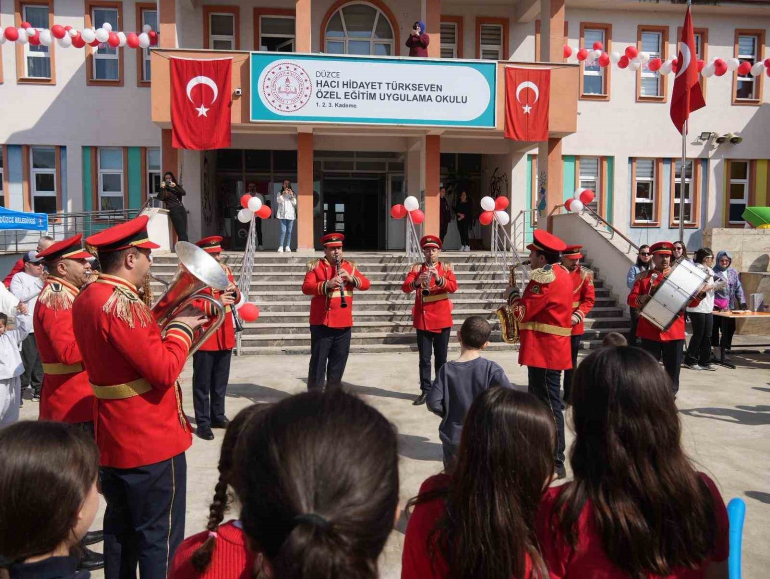 Düzce Belediyesi Bando Takımının çaldığı müzikler eşliğinde eğlenceli zaman geçiren özel öğrencilere, belediye birimleri tarafından okul bahçesinde açılan stantlarda yüz boyama yapılırken, bir yandan da patlamış mısır ve pamuk şeker ikramlarında bulunuldu. Eğlenceli ve dolu dolu bir gün geçiren öğrenciler, alanda kurulan şişme oyuncuklarda oyunlar oynamayı ve sportif etkinliklere katılmayı da ihmal etmedi.