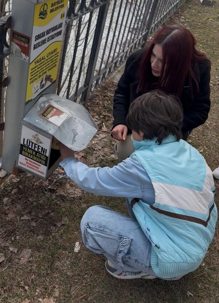 Bayburt Özel Eğitim Uygulama Okulu öğrencileri, Otizm Farkındalık Günü etkinlikleri kapsamında sokak hayvanlarını unutmadı. Öğrenciler, kentte oluşturulan besleme istasyonlarına mama bırakıp, küçük kaplara doldurdukları mamaları hayvanların yiyebileceği alanlara yerleştirdi.