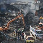 AVM’nin enkazında arama çalışmaları sürüyor.