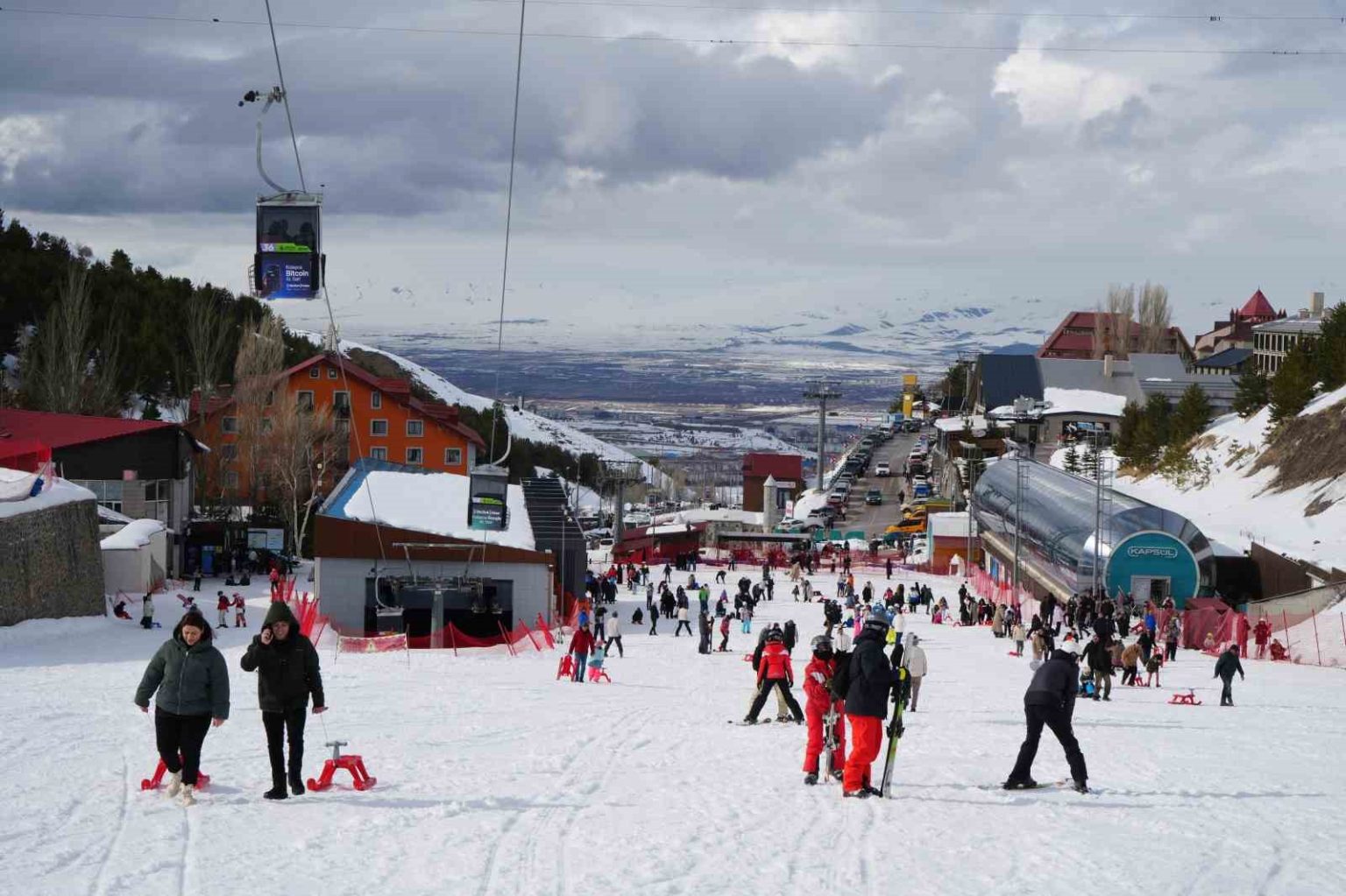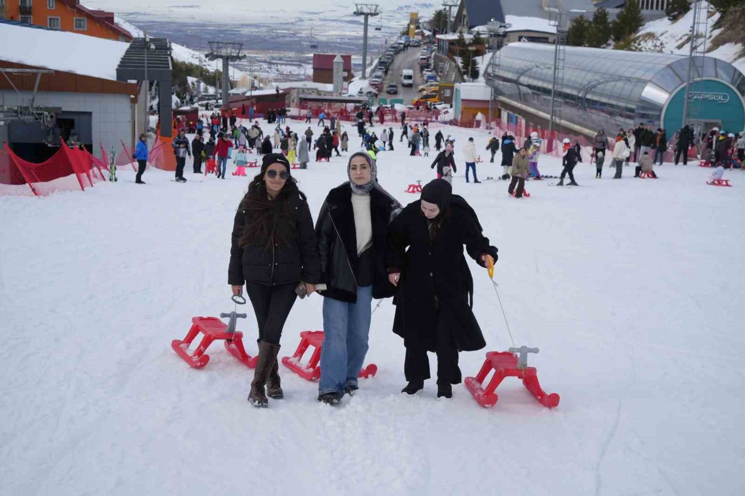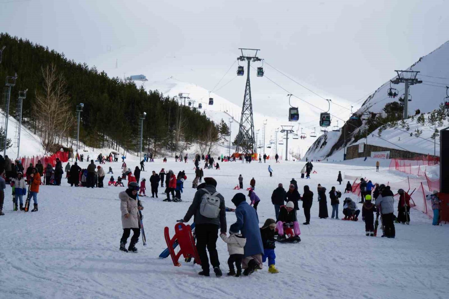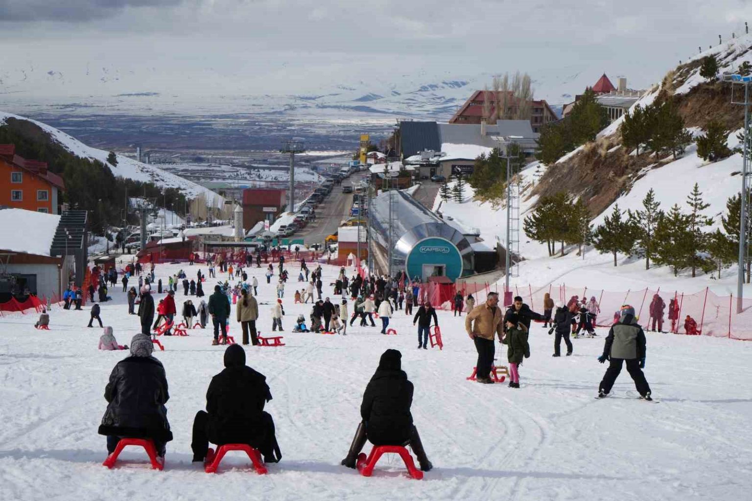 Bayram tatilinin başlaması ve okulların ara tatilde olmasıyla birlikte Palandöken’deki otellerde doluluk oranları en üst noktalara çıktı. Şehir dışından ve yurt dışından gelen binlerce turist, güneşli hava eşliğinde kayak yapmanın tadını çıkarıyor. Kayak ile birlikte özellikle çocuklar kızaklarıyla keyifli anlar yaşıyor.