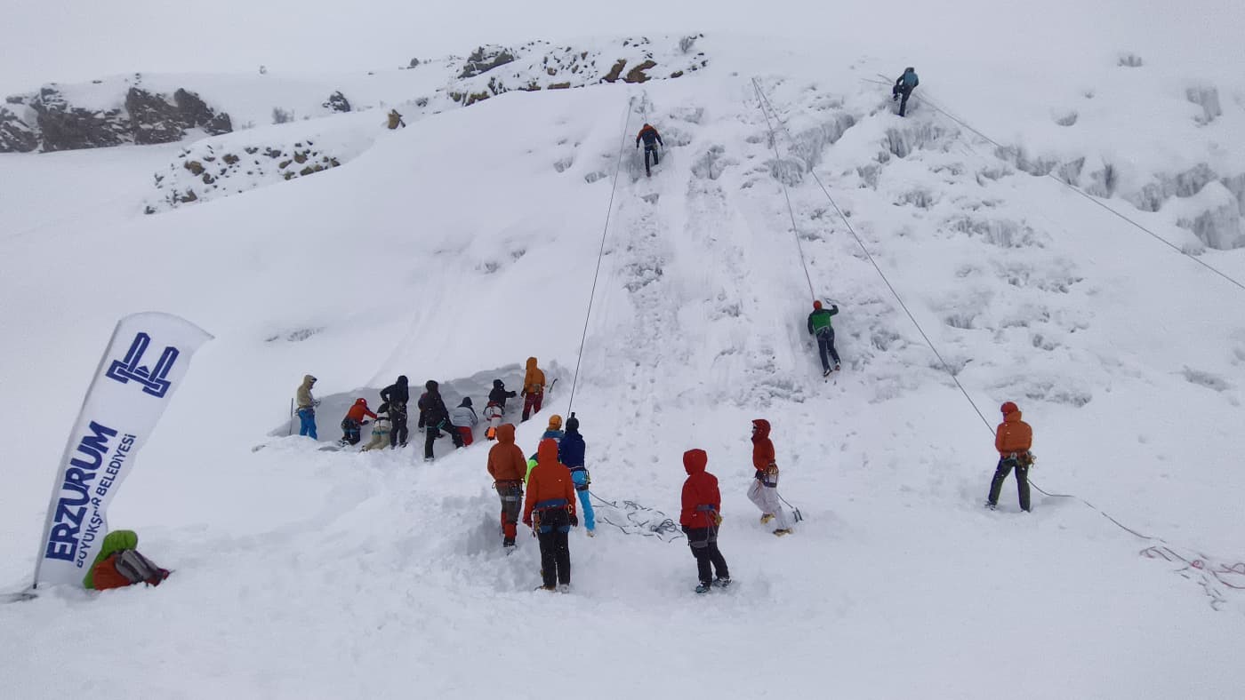 Türkiye Dağcılık Federasyonu İzmir İl Temsilciliği tarafından İzmirli sporculara yönelik düzenlenen buz tırmanışı eğitimi, Palandöken IcePark’ta gerçekleştirildi.