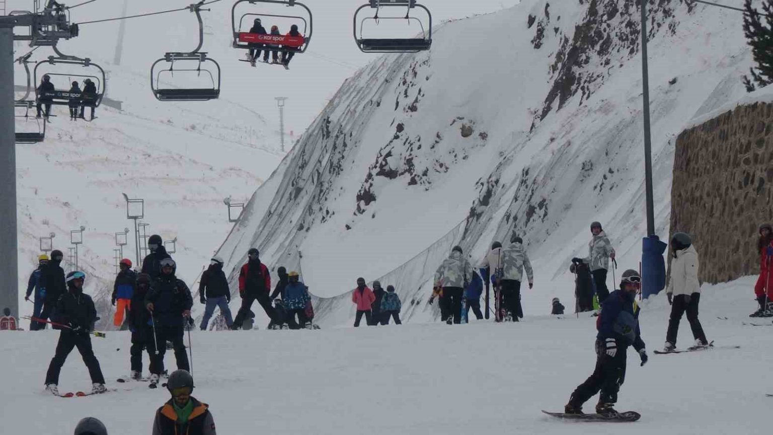 Erzurum Palandöken Kayak Merkezi’nde yaşanan yoğunluk yarıyıl tatili ile birlikte zirveye ulaştı.