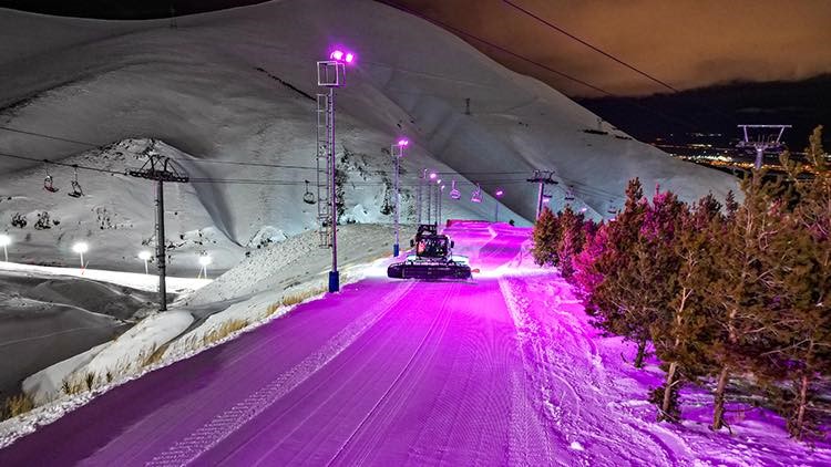 Kış turizminin göz bebeği Palandöken Kayak Merkezi’nde gece kayağı, adrenalinle görselliği bir araya getiriyor. 10 kilometreyi bulan aydınlatılmış pistlerde, son teknoloji projektörler ve renkli ışık sistemleriyle hem güvenli hem de etkileyici bir atmosfer sunuluyor. Akşam saatlerinde özenle hazırlanan parkurlar, şehrin ışıklarıyla bütünleşerek eşsiz bir manzara oluşturuyor. Palandöken Dağı’nda yapılan son ölçümlerde kar kalınlığı 216 cm olarak belirlendi.