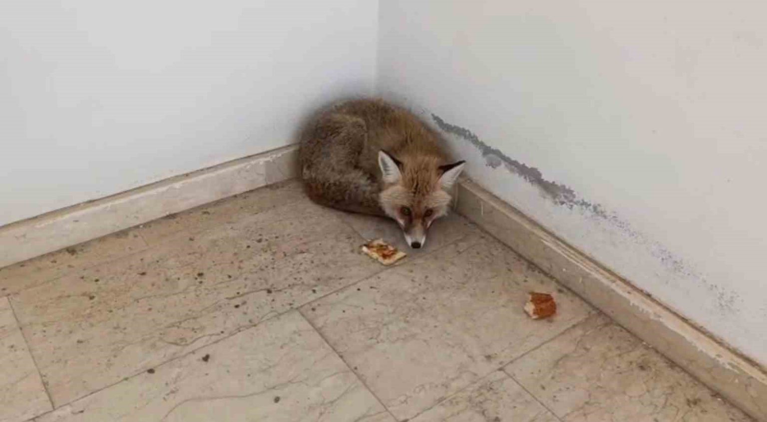 Elazığ’ın Palu ilçesindeki bir ilkokulun içine giren tilki, merdiven boşluğunda görüntülendi.