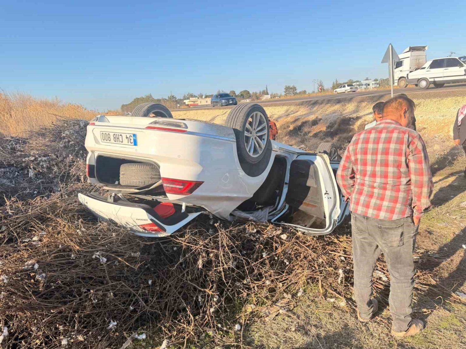 Edinilen bilgiye göre, Şanlıurfa-Akçakale karayolu üzerinde Vahit A.’nın kullandığı 34 CHB 800 plakalı Volkswagen marka otomobil, sürücüsünün direksiyon hakimiyetini kaybetmesi sonucu kontrolden çıkarak şarampole devrildi. Ters dönen otomobilin sürücüsü, yol kenarında istiflenen pamuk saplarının sünger görevi görmesi sonucu kurtuldu. Hafif şekilde yaralanan sürücünün Akçakale Devlet Hastanesine götürüldüğü öğrenildi.