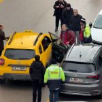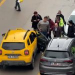 Park halindeki aracın açılan kapısına taksi çarptı