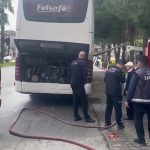 Park halindeki otobüsün motor bölümünde yangın çıktı
