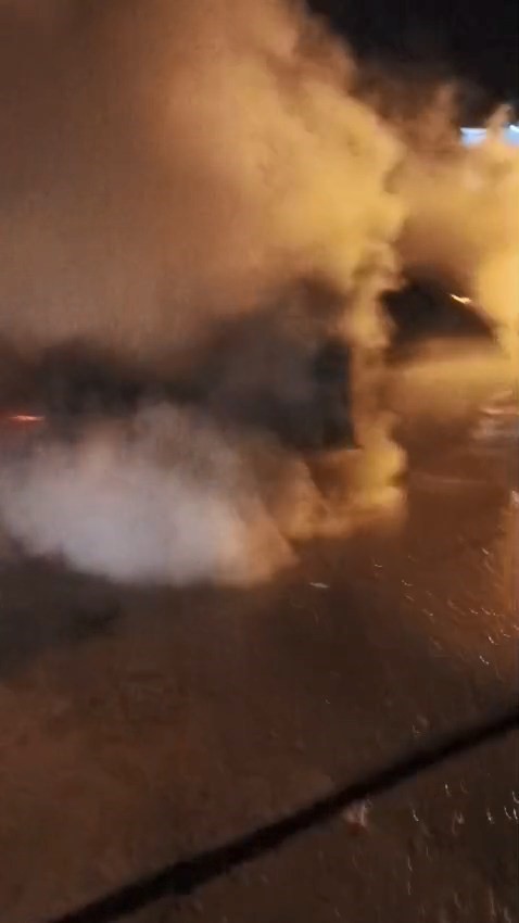 Elazığ’da park halindeki otomobil alev alev yandı.