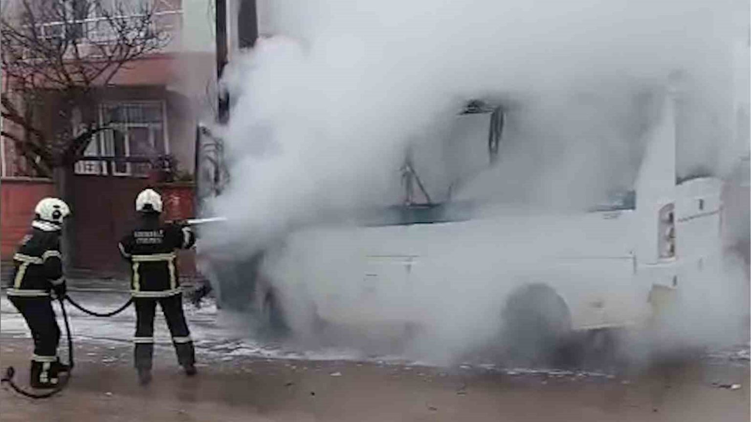 112 Acil Çağrı Merkezi’ne yapılan ihbar üzerine olay yerine itfaiye ve polis ekipleri sevk edildi. İtfaiye ekiplerinin müdahalesiyle yangın kısa sürede kontrol altına alınarak söndürüldü. Yangının ardından araçta soğutma çalışması yapıldı. Büyük çapta maddi hasar meydana gelen minibüs kullanılmaz hale geldi.
