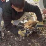 Patisi zincire sıkışan köpeğe hayat kurtaran müdahale