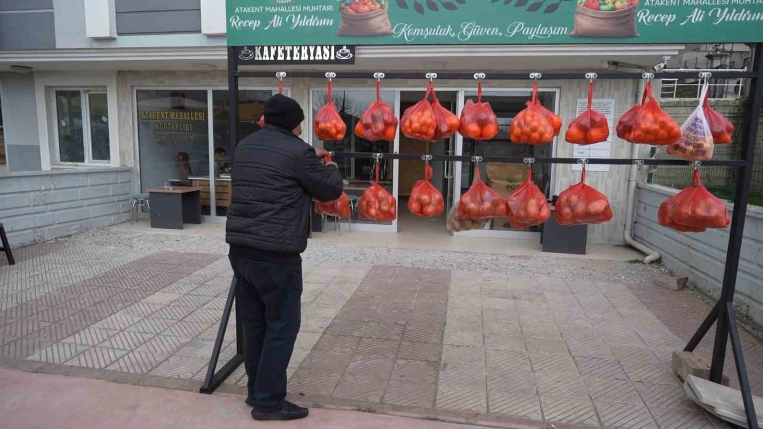 Samsun’un Atakum ilçesine bağlı Atakent Mahallesi’nde Muhtar Recep Ali Yıldırım tarafından hayata geçirilen “Askıda Sebze ve Meyve Projesi” ile ihtiyaç sahipleri, muhtarlık önünde kurulan stanttan ücretsiz sebze ve meyve temin edebiliyor.