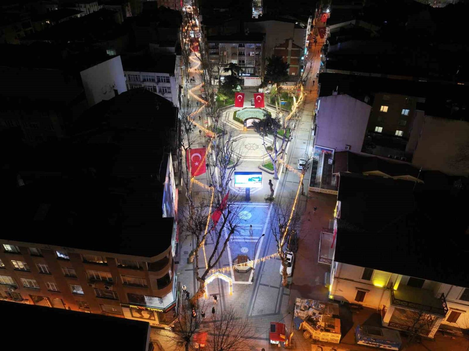 Öte yandan Pendik’te sokaklarda yapılan ışıklandırma çalışmaları dron ile görüntülendi.