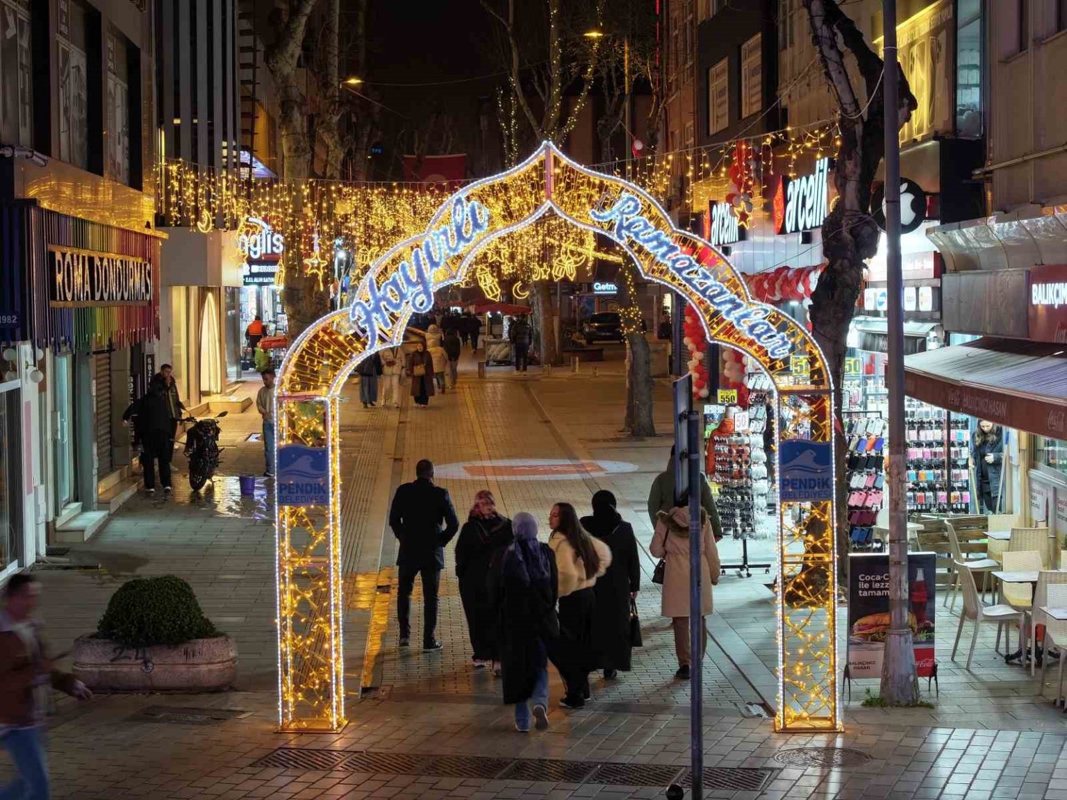 Ramazan ayına sayılı günler kala, İstanbul’un çeşitli noktalarında Ramazan’a özel ışıklandırma çalışmaları yapılıyor. Vatandaşların uğrak noktalarından olan bazı bölgeler, Ramazan ayı için LED ışıklarla ve süslerle donatılıyor. Pendik Belediyesi ekipleri de, yaklaşan Ramazan ayının manevi havasına uygun olarak ilçenin çeşitli noktalarında ışıklandırma çalışmaları gerçekleştirdi. LED ışıklarla ve dekoratif motiflerle süslenen Gazipaşa Caddesi, Çarşı Camii ve çevresi Ramazan ayını ışıl ışıl karşılamaya hazırlandı. Ramazan akşamlarına renk ve estetik katacak olan ışıklandırma çalışmaları vatandaş tarafından da ilgi ve beğeniyle karşılandı. Ramazan ayının manevi havasına renk katan ışıklandırma ve süslemeler, Ramazan ayı boyunca sokakları süslemeye devam edecek.
