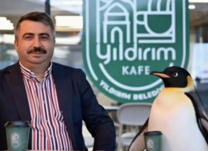Bursa’nın Yıldırım Belediyesi de “Nereye gittiğini merak edenler olmuş” ifadesini kullanarak görüntü paylaştı. Görüntüde belediyenin tesislerine ve Belediye Başkanı Oktay Yılmaz ile yan yana penguene yer verildi.