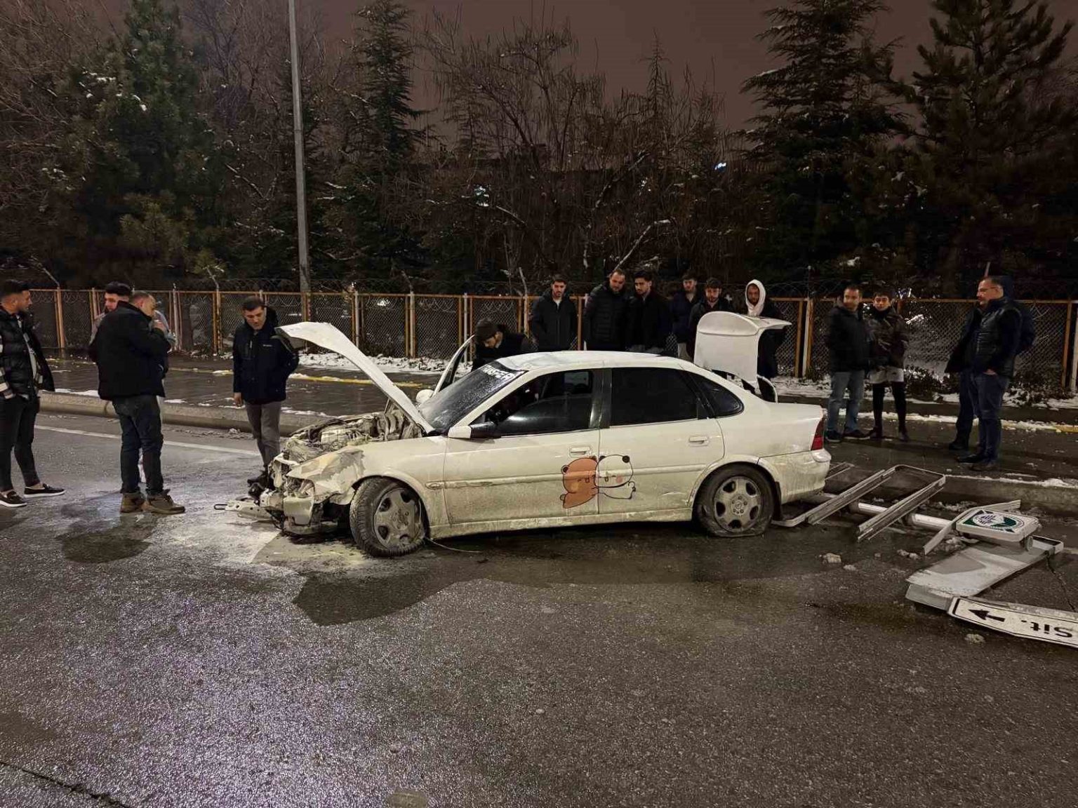 Kaza sonrası kazanın nasıl meydana geldiğini anlatan S.E.C., “Refüjü görmedim. otomobil de refüje oturdu. Tabelaya çarptım. Sonra da direksiyonu kırdım. Direksiyonu kırmasam zaten lojmandan içeri girerdim. Direksiyonu kırmadan düz girmesem daha kötü olabilirdi. Birazda tecrübeden diyebilirim. Direk cumburlop diye refüjden içeri atladık. Oradan refüjü görmedim. Birazda kar yağışı vardı. Çok fazla da hızlı değildim. Bizde bir şey yok çok şükür. Otomobilin hali ortada” ifadelerini kullandı.
