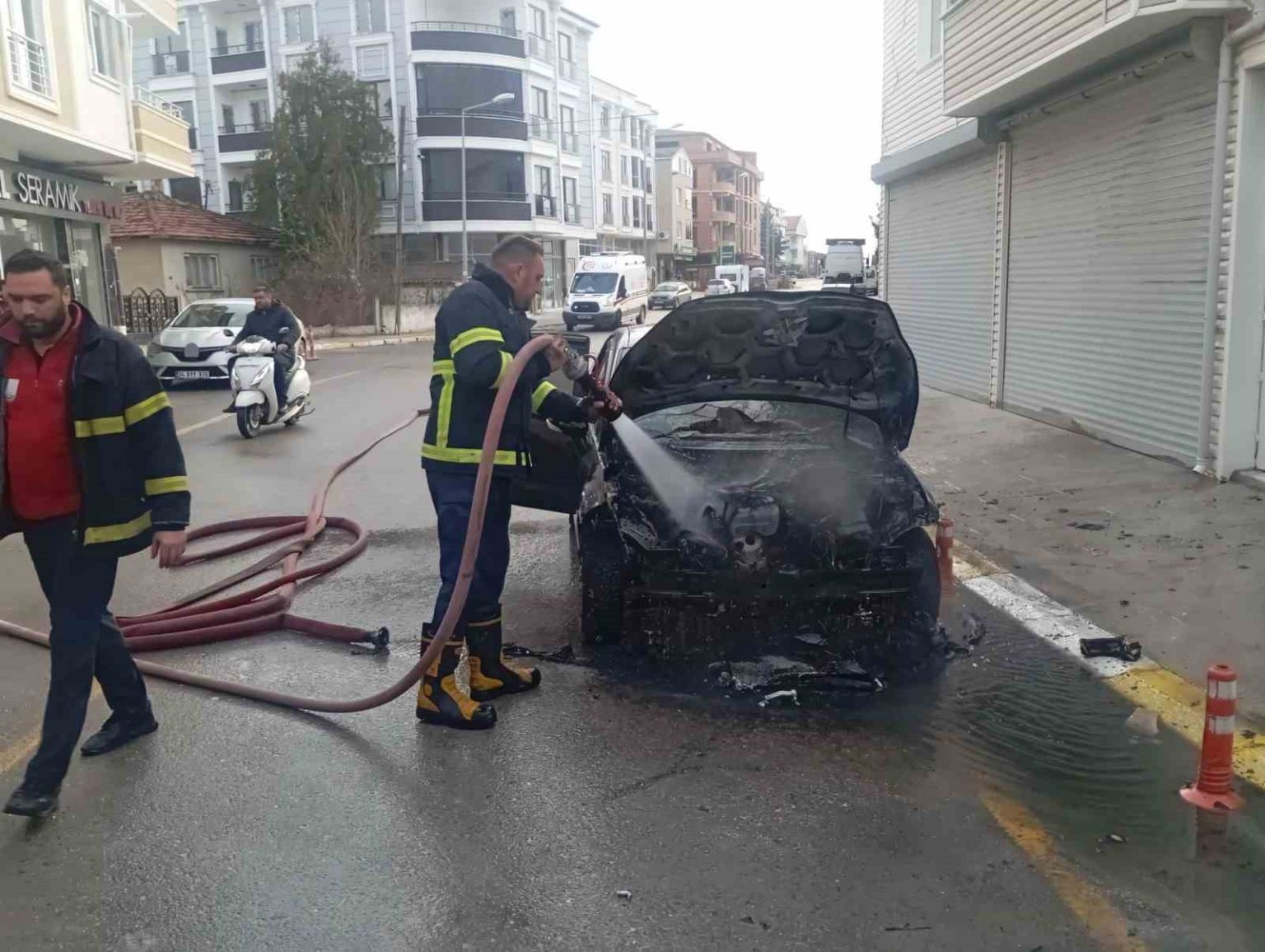 Olay, Pınarhisar ilçesi 305. Sokak üzerinde meydana geldi. Edinilen bilgiye göre, Berkay Pöke’ye ait park halindeki otomobilin motor kısmından henüz belirlenemeyen bir sebeple dumanlar yükselmeye başladı. Durumu fark eden çevredeki vatandaşlar ve araç sahibi, vakit kaybetmeden itfaiye ekiplerine haber verdi.