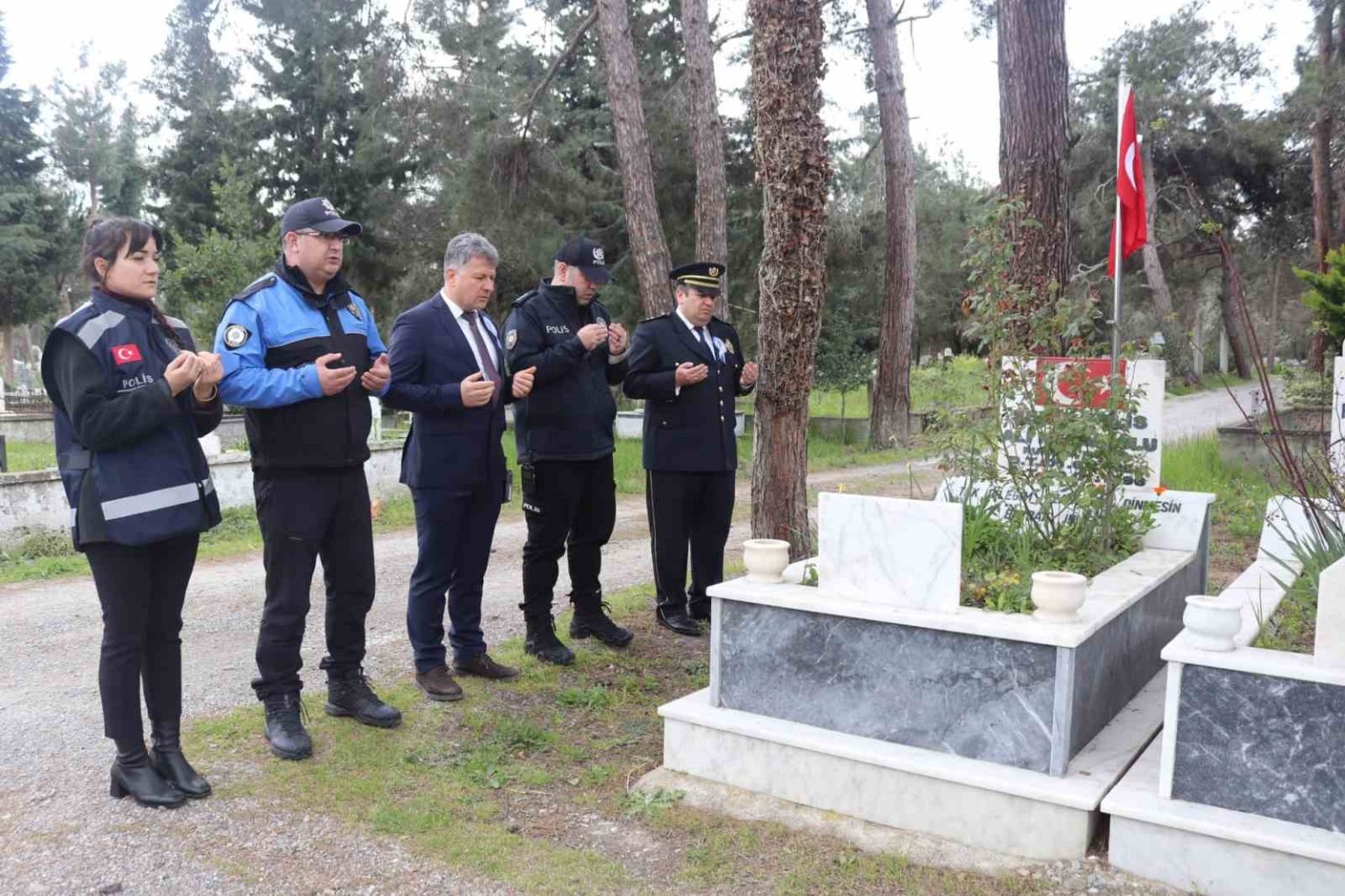 Bafra’da düzenlenen törenlerin ardından şehit polisler Oktay Uçar ve Ali Kesimoğlu, Bafra Asri Mezarlığı’ndaki kabirleri başında dualarla anıldı. Bafra İlçe Emniyet Müdürü Murat Öner, Başkomiser Ömer Batuhan Yılmaz, Komiser Mustafa Kurt ve emniyet personelinin katıldığı anmada, şehitler için Kur’an-ı Kerim okunarak dua edildi.