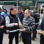 Cuma namazı sonrası ise cami çıkışında kurulan stantta vatandaşlara yönelik bilgilendirme çalışması yapıldı. Bafra Toplum Destekli Polislik Büro Amirliği ile Narkotik Suçlarla Mücadele Şube Müdürlüğü TUBİM personeli tarafından yürütülen çalışmada, madde bağımlılığıyla mücadele kapsamında broşürler dağıtıldı, vatandaşlara lokum ikram edildi.