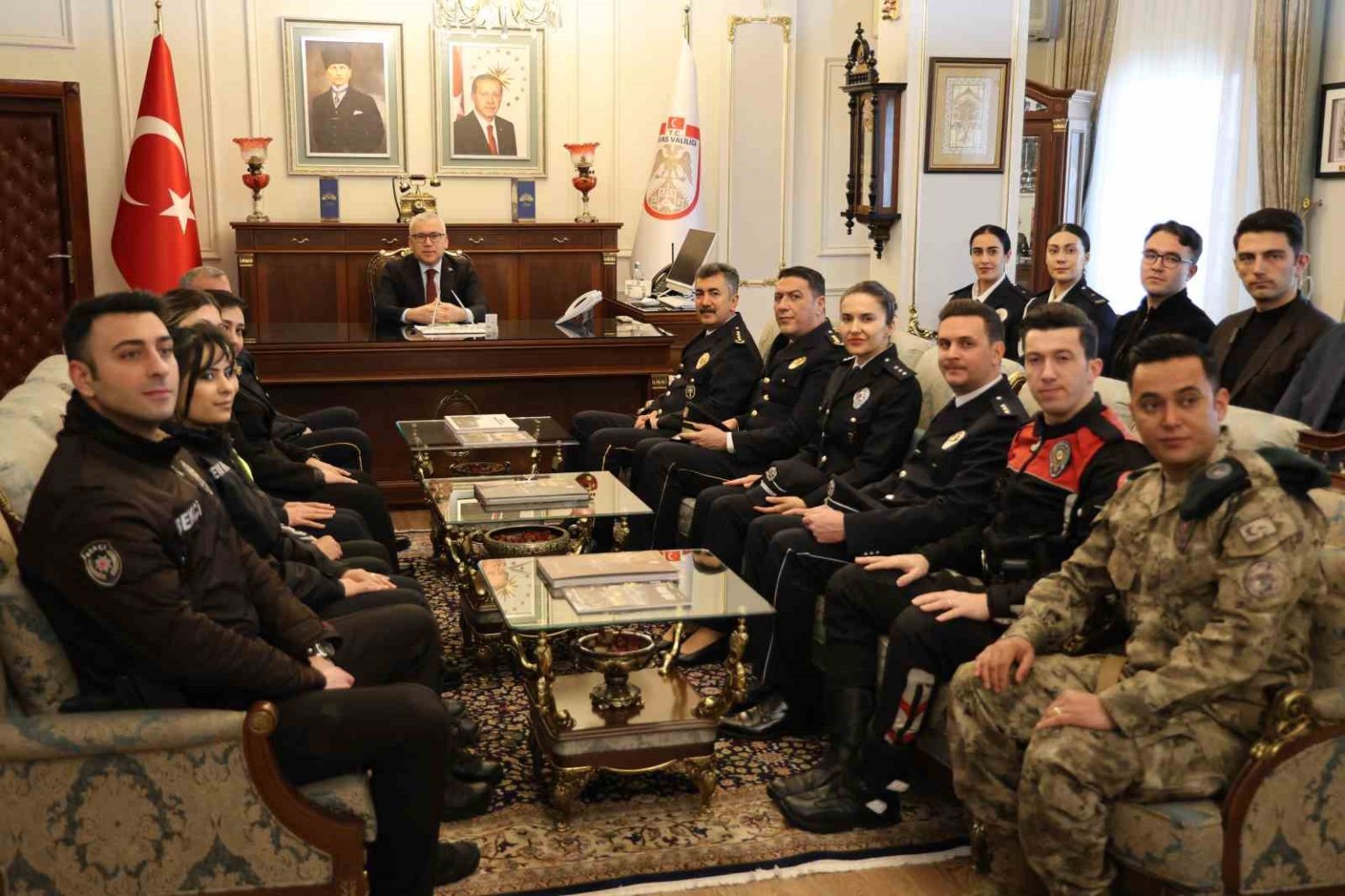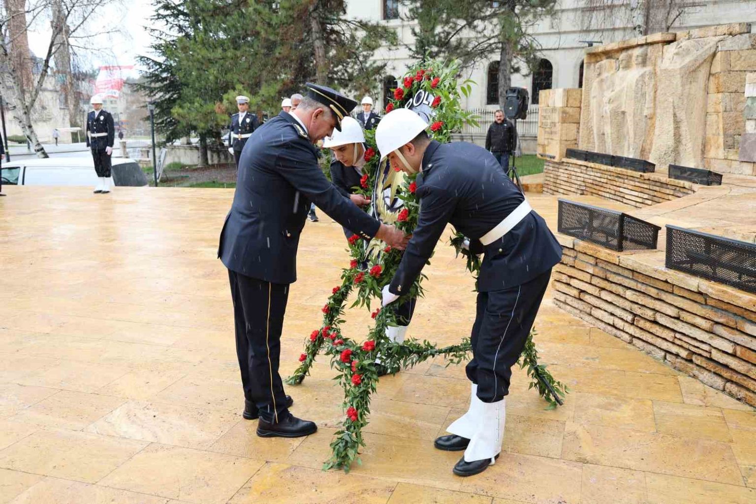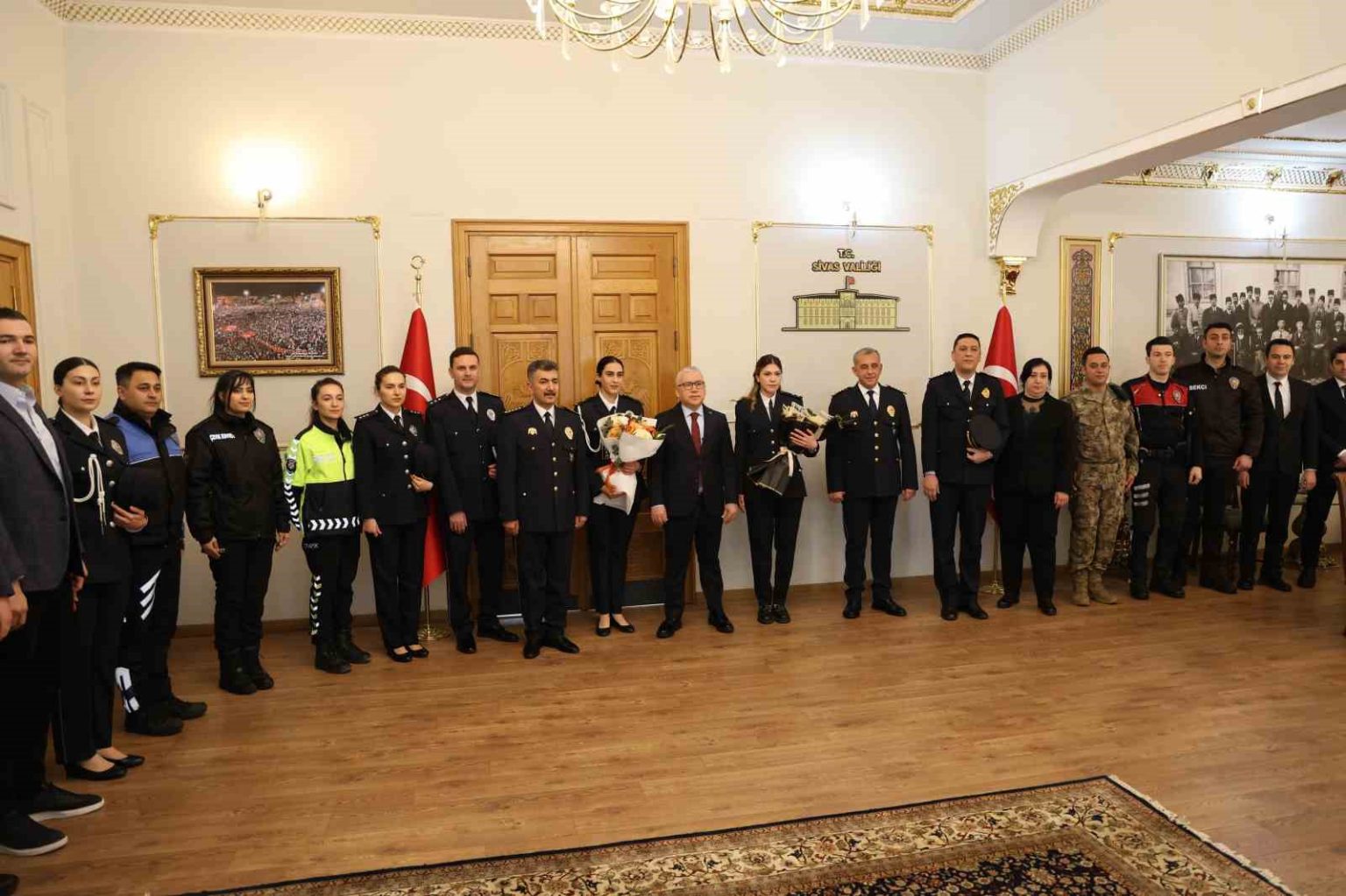 Sivas’ta Türk Polis Teşkilatı’nın kuruluş yıl dönümü etkinliklerle kutlandı. Atatürk heykeline çelenk sunumu ile başlayan program, saygı duruşu ve İstiklal Marşı’nın okunmasıyla devam etti. Daha sonra Sivas İl Emniyet Müdürü Ahmet Alaağaçlı, Polis Meslek Yüksekokulu Müdürü Mahmut Güven ve beraberindekiler Sivas Valisi Yılmaz Şimşek’i makamında ziyaret etti. Vali Şimşek, Türk Polis Teşkilatı’nın 181’inci kuruluş yıl dönümünü kutlayarak, personele başarılar diledi.