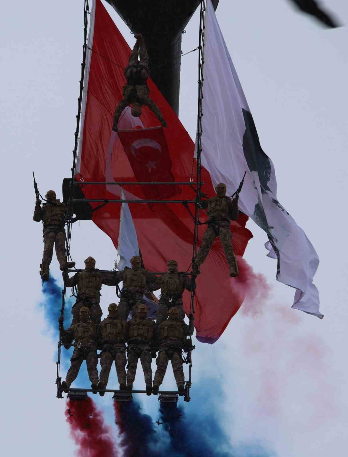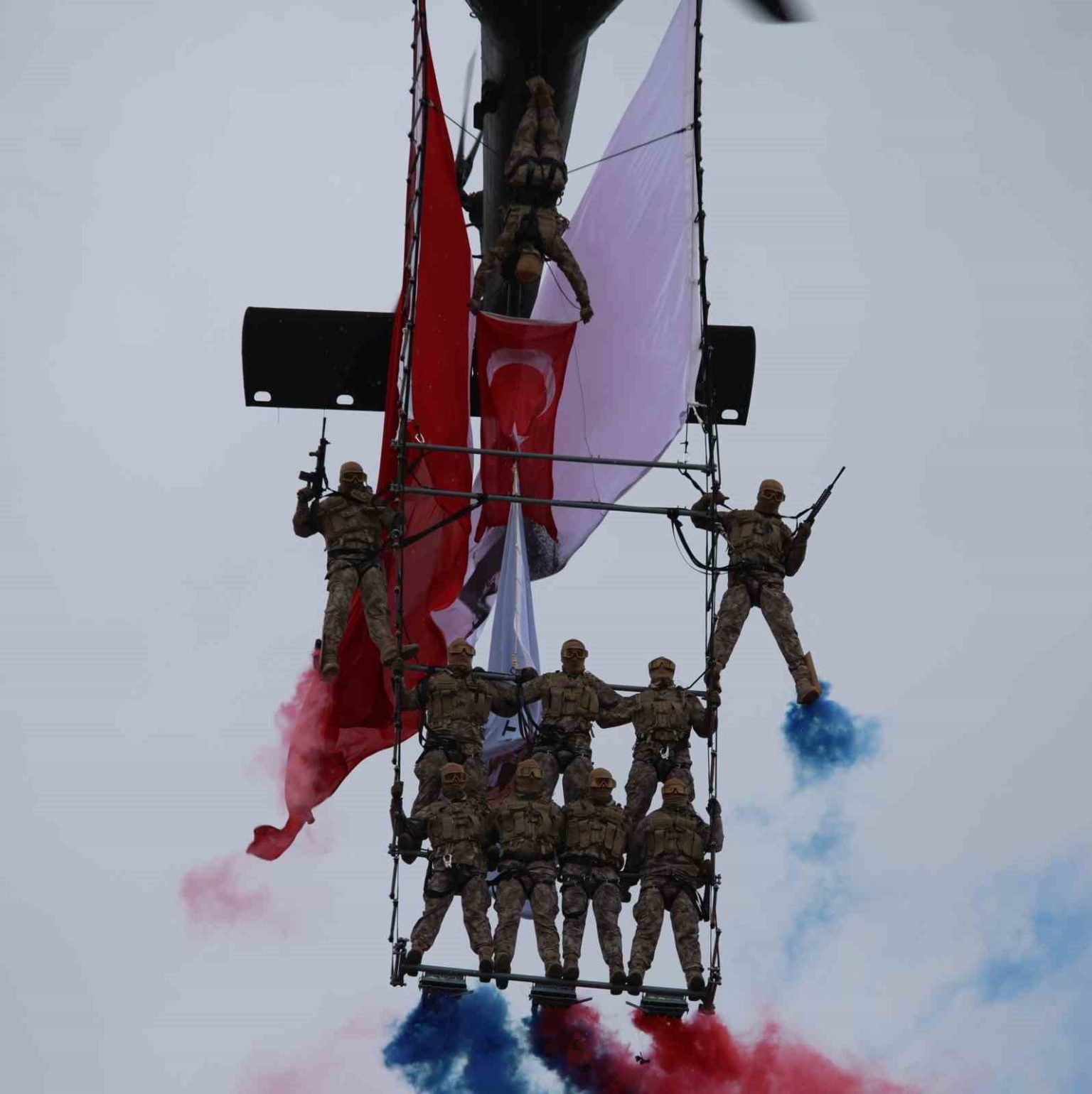 Sivas’ta Polis Haftası kutlamalarında özel harekat polislerinin helikopterli gösterisi izleyenlerin takdirini topladı.