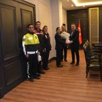 Türk Polis Teşkilatı’nın kuruluşunun 181. yıl dönümü ve 10 Nisan Polis Haftası münasebetiyle, Edremit İlçe Emniyet Müdürü Burak Lehimer ve beraberindeki emniyet mensupları, Edremit Kaymakamı Ahmet Odabaş’ı makamında ziyaret etti.