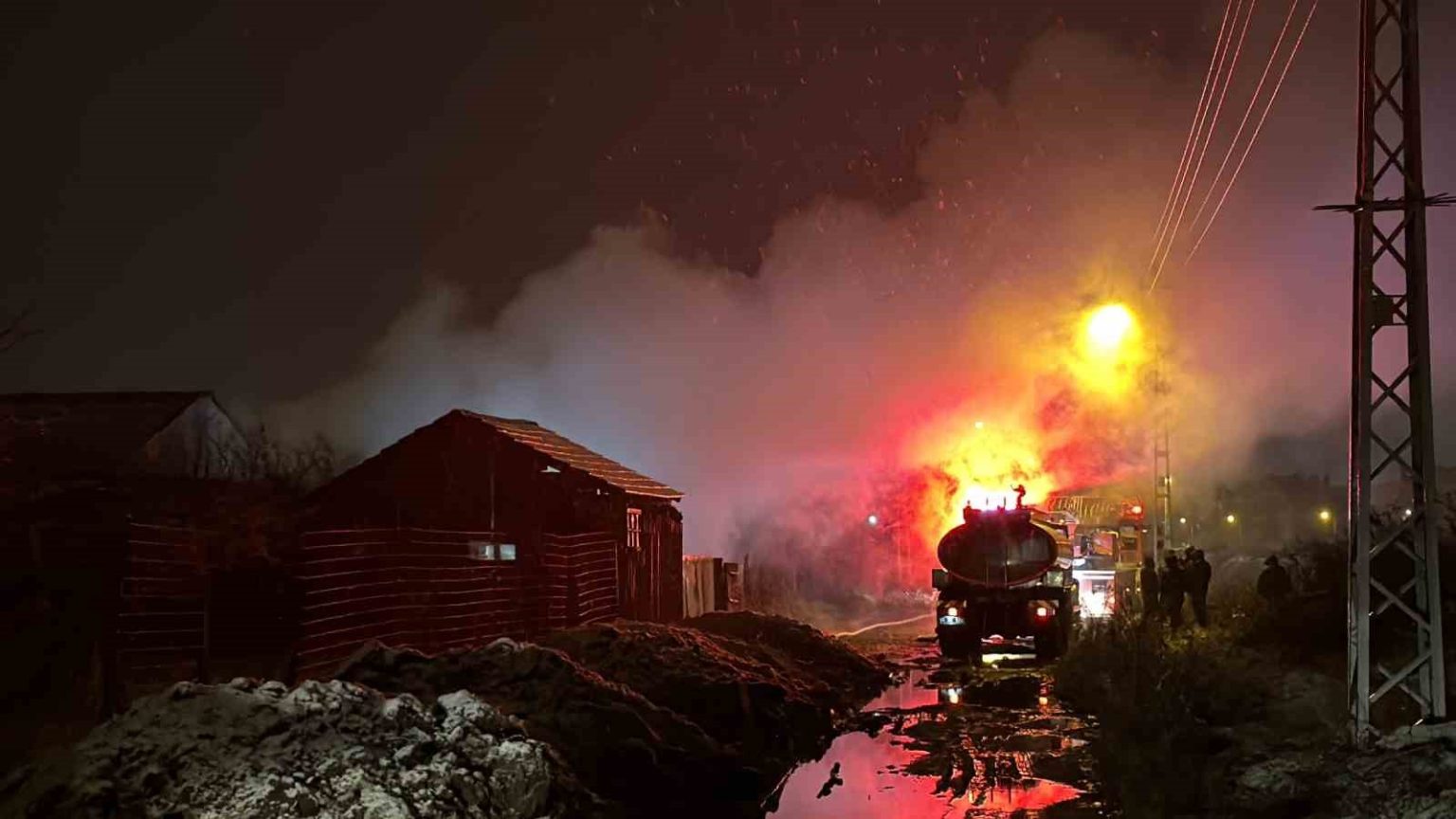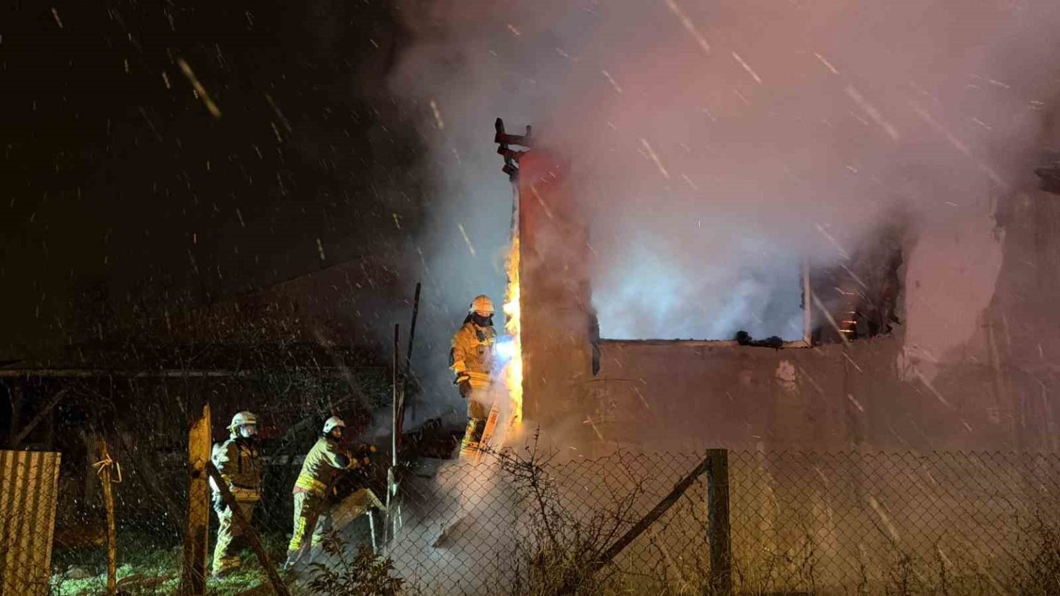 Düzce’nin Çamköy Mahallesi 3118. Sokak’ta Sultan Akgül’e ait evin müştemilat bölümünde, henüz belirlenemeyen bir nedenle yangın çıktı. Yapının ahşap olması nedeniyle alevler kısa sürede büyüyerek müştemilatın tamamını sardı. Yangını, bölgede devriye görevinde bulunan polis amiri fark ederek durumu itfaiyeye bildirdi. İhbar üzerine olay yerine sevk edilen Düzce Belediyesi İtfaiye Müdürlüğü ekipleri, yangına hızla müdahale etti. Ekiplerin yoğun çalışması sonucu alevlerin, hemen bitişiğinde bulunan ve içerisinde 9 büyükbaş hayvanın yer aldığı ahıra ve 4 kişinin yaşadığı tek katlı eve sıçraması önlendi.