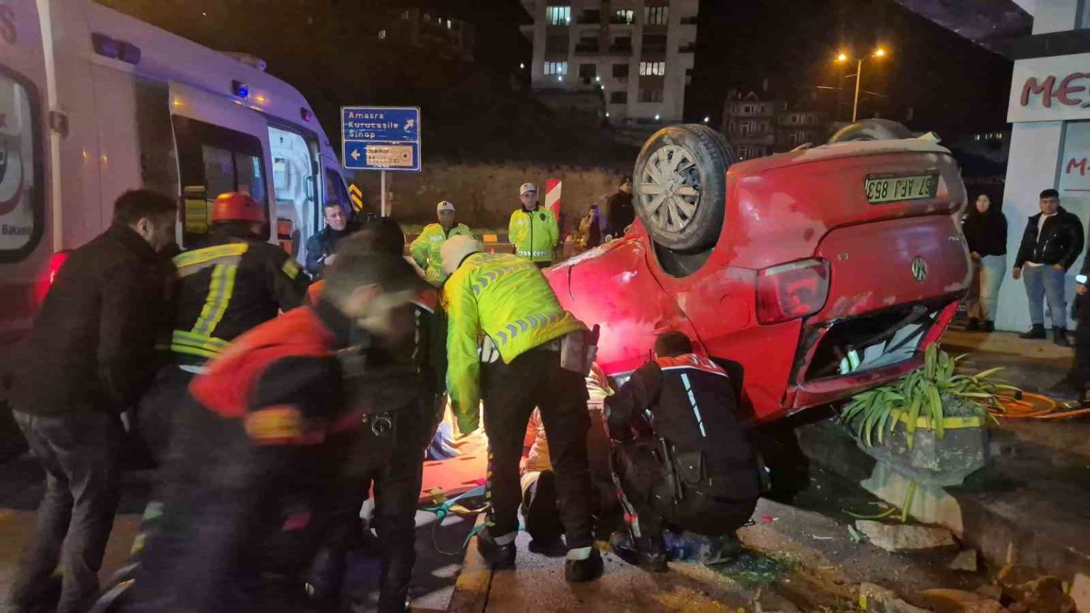 Edinilen bilgiye göre, polisin ’dur’ ihtarına uymayan E.K. idaresindeki 67 AFJ 853 plakalı otomobil, Arıt Kavşağı’nda yoldan çıkarak takla attı. Kazada araçtaki E.K., R.B. ve M.H. isimli şahıslar yaralandı. Araçta sıkışan R.B. isimli şahıs, itfaiye ekiplerinin müdahalesiyle bulunduğu yerden çıkarıldı. Aracı kovalayan polisler tarafından kurtarılan yaralılar E.K., R.B. ve M.H. olay yerine sevk edilen ambulanslarla, Bartın Devlet Hastanesi’ne kaldırıldı. Tedavi altına alınan yaralılardan R.B’nin durumu ağır olduğu öğrenilirken olay yerinde inceleme başlatıldı.