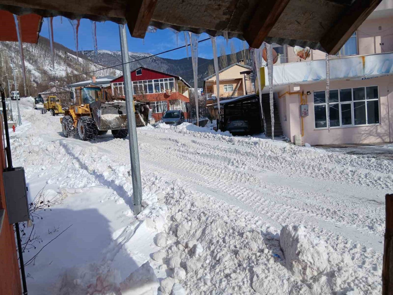 Yılbaşı ile birlikte bölgede etkili olan yoğun kar yağışı sonrası ilçe merkezinde cadde ve sokaklarda oluşan kar yığınları Belediye ekiplerince kaldırılmaya başladı.