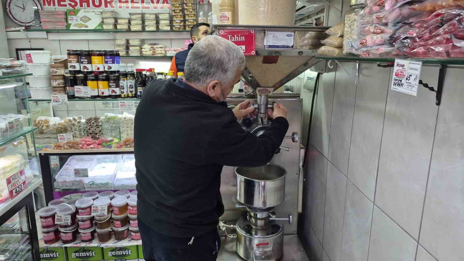 “İnşallah Ramazan bereketli, işlerimiz daha iyi olur. Ramazan Ayı’nda tahin, pekmez ve helvalarımız revaçta. Met helvası genellikle Eskişehir dışına gidecek olanlar için hediyeliktir. Bir yere hediye götürüleceği zaman met helvasını tercih ediyorlar. Ramazan Ayı’nda ise hem sofralarda tercih ediliyor hem de misafirliğe gidilirken götürülüyor. Şu anda rağbet genellikle susam ve tahinedir. Ben burada tahini kendim çekiyorum. Met helvasının kilosunu 420 TL yaptık, sade helvalarımız 320 TL, pekmezlerimiz ise 250 lira. Bu ürünleri Ramazan Ayı’nda biz kendimiz de tüketiyoruz. Helvalarımız ve tahinlerimiz sahurda tüketilince tok tutuyor.”