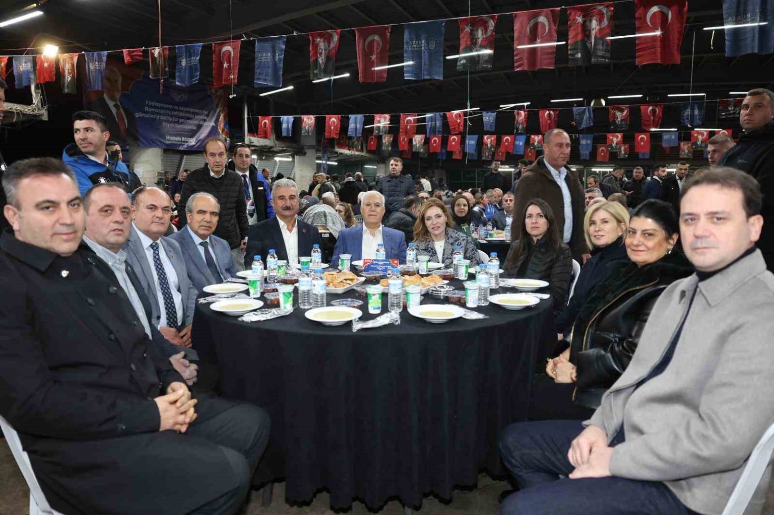 Ramazan’ın manevi iklimini çeşitli programlarla kent genelinde yaşatan Bursa Büyükşehir Belediyesi, 4 sabit iftar noktasında ise her gün binlerce kişiyi dayanışma sofralarında buluşturuyor. Bursa Büyükşehir Belediye Başkanı Mustafa Bozbey ve eşi Seden Bozbey de Osmangazi ilçesi Fatih ve Çiftehavuzlar Mahallesi’nde yer alan Kapalı Pazar Alanı’ndaki iftar programına katıldı. Gençlerin sloganlarla ve coşkuyla karşıladığı Başkan Mustafa Bozbey, masaları tek tek ziyaret ederek vatandaşlarla sohbet etti. CHP İl Başkanı Nihat Yeşiltaş, Büyükşehir Belediyesi Genel Sekreteri Ali Altunsoy, siyasi partilerin temsilcileri, sivil toplum kuruluşlarının temsilcileri, muhtarlar ve Büyükşehir Belediyesi yöneticilerinin de yer aldığı programda, vatandaşlar akşam ezanıyla birlikte oruçlarını açtı.