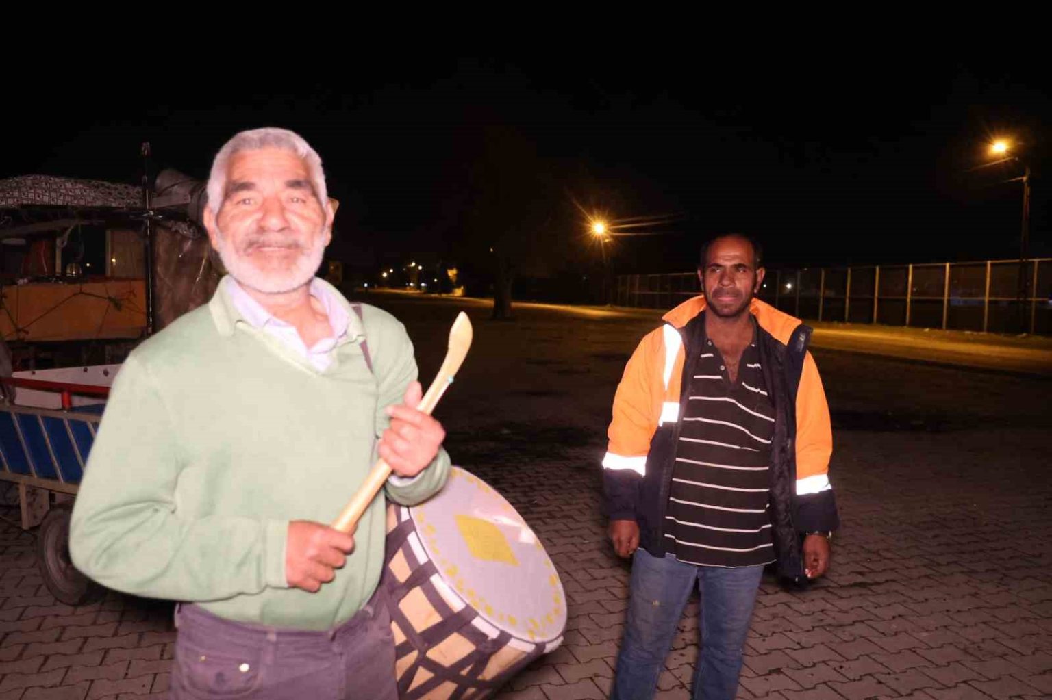 Kozan ilçesinde Ramazan davulcuları her gece 03.30 sıralarında mesaiye başlıyor. İlçeye bağlı Gazi Mahallesi’nde vatandaşları sahura kaldıran davulcu Cemal Çatal ve Yalçın Martkan geleneksel yönteme teknolojik yöntem ekledi. İkili, bir yandan davul çalarken bir yandan da elektrikli bisikletlerine bağladıkları hoparlörden davul zurna sesi vererek vatandaşları sahura kaldırıyor.